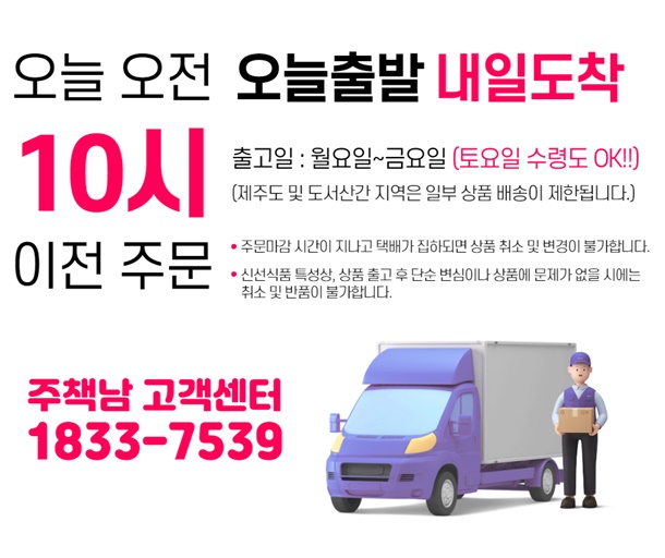 · 배송마감 : 오전 10시 이전 주문시 당일출고